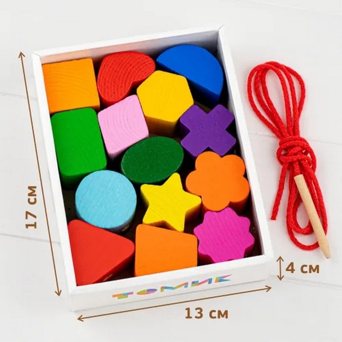 Во время нанизывания деталей на шнурок, развивается мелкая моторика ребёнка, ловкость и усидчивость, сосредотачиваясь на процессе.