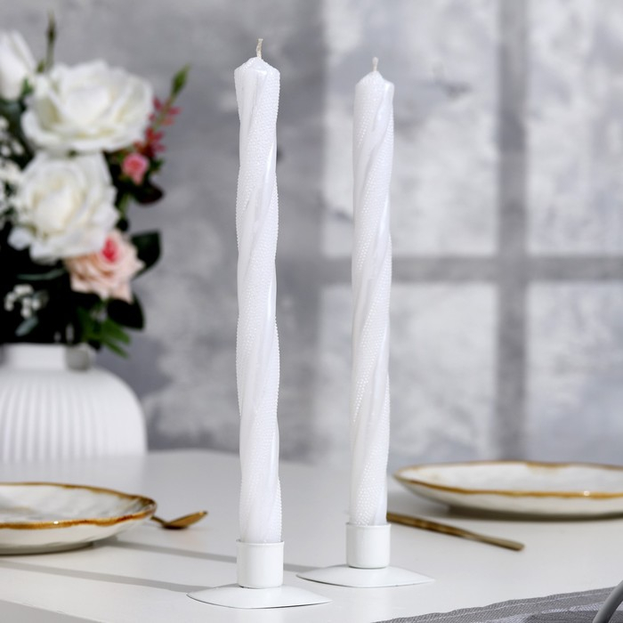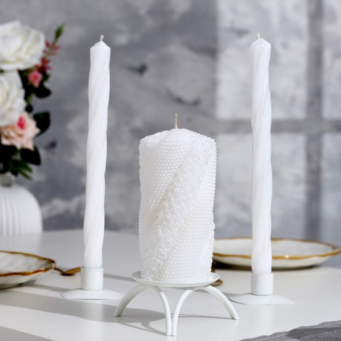 Набор свадебных свечей в коробке "Слияние в розах", 27х2,2 см, белый, родительская пара