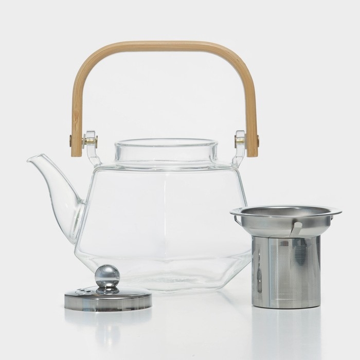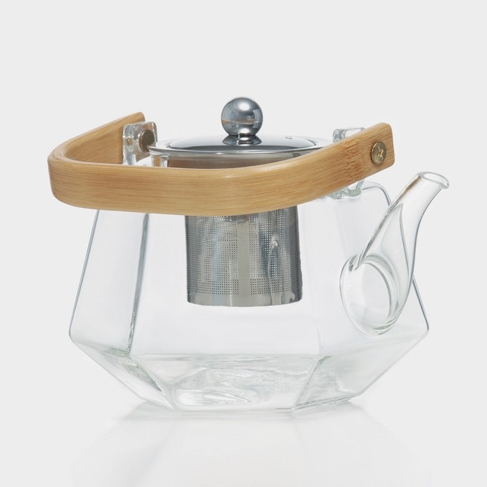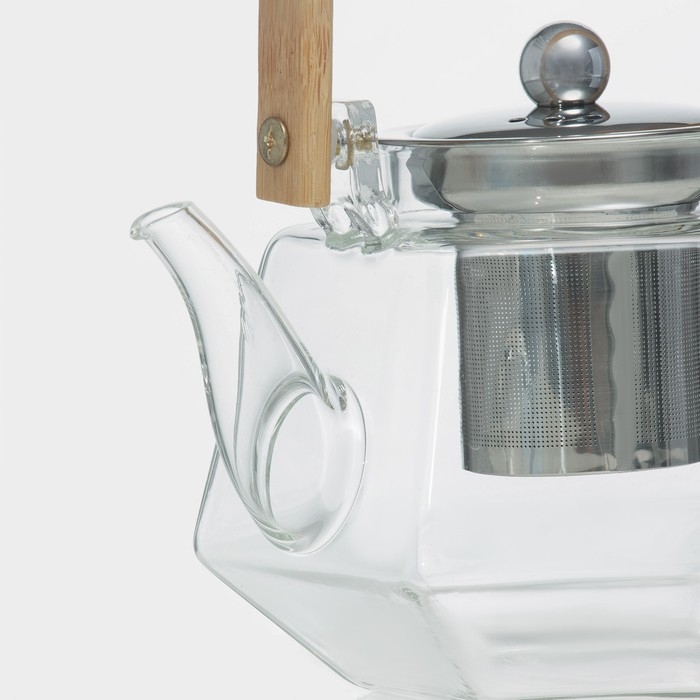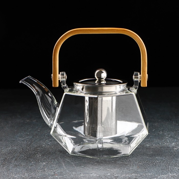 Чайник стеклянный заварочный с бамбуковой крышкой и металлическим ситом «Октогон», 800 мл