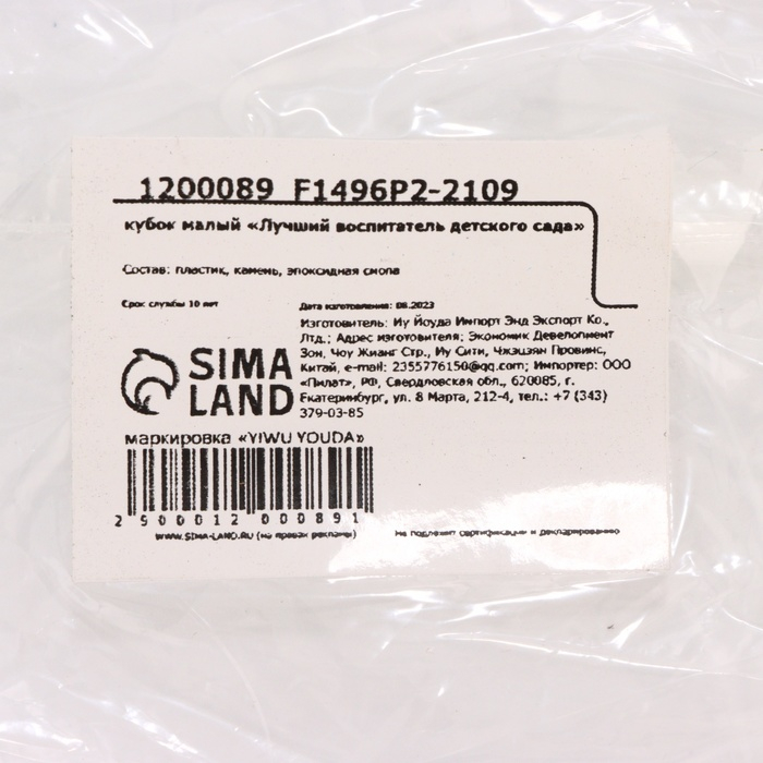 Кубок «Лучший воспитатель детского сада», наградная фигура, пластик, золото, 13 х 8 х 5 см.