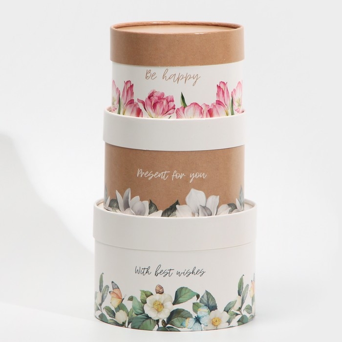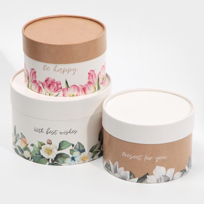 Набор шляпных коробок 3 в 1, упаковка подарочная, «Цветочный», 16 х 10, 14 х 9, 13 х 8,5 см