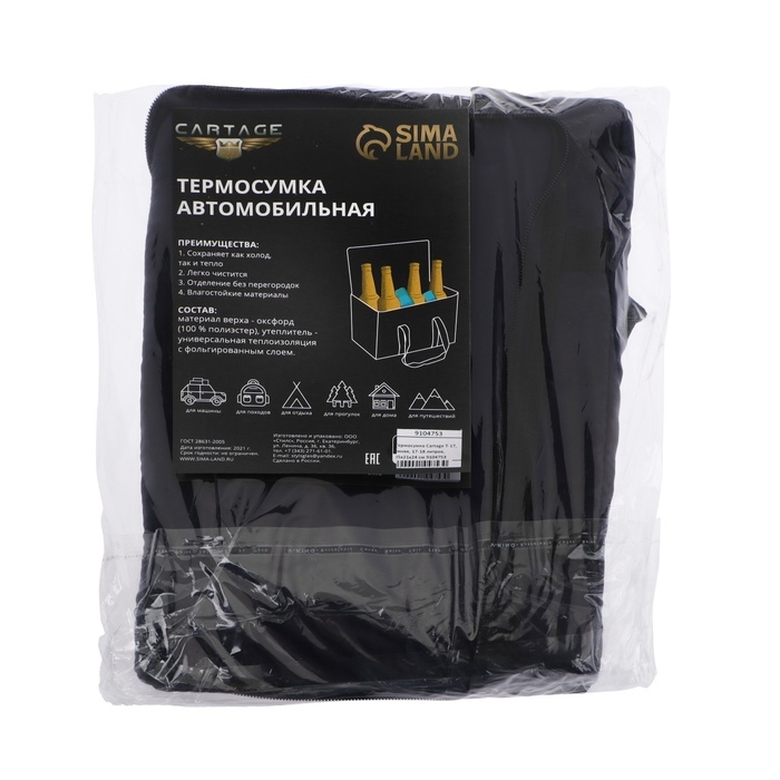 Термосумка Cartage Т-10, черная, 18 л, 35х21х24 см