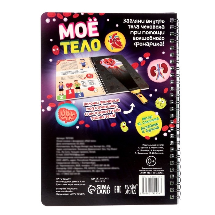 С умной книжкой «Моё тело» ребёнок узнает, как устроен человеческий организм и как работают все наши органы и системы. Выполняйте задания, ищите подсказки с помощью фонарика и узнавайте много нового вместе с малышом.