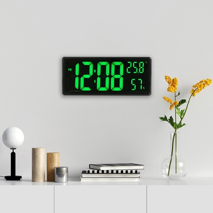 Часы электронные настенные, настольные, с будильником, 36 х 3 х 15 см