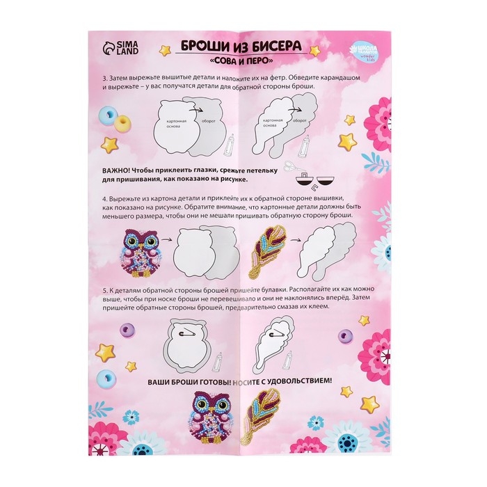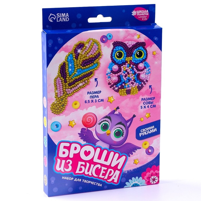Вышивка бисером. Брошь «Сова и перо», набор для творчестваа