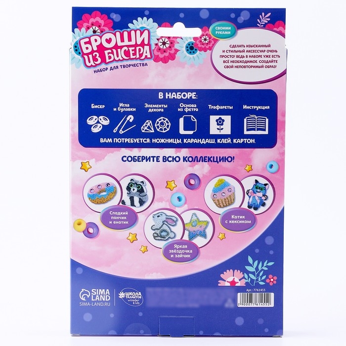 - Внутри вы найдёте основу, трафареты, инструменты и элементы декора для изготовления двух аксессуаров.