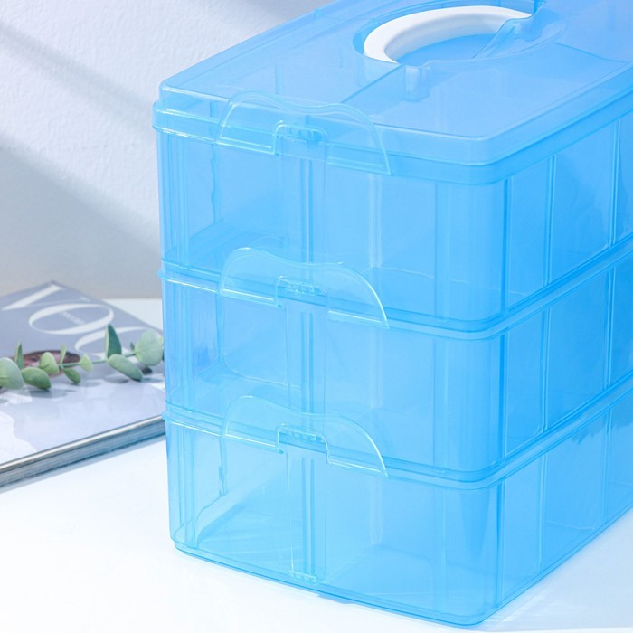 Органайзер для хранения пластиковый, 3 яруса, 30 ячеек, 32×18×24 см, цвет голубой