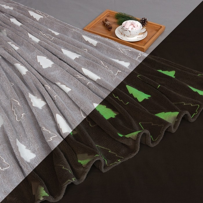 Плед светящийся в темноте Этель "Елочки" 150*200 см,100% п/э, корал-флис 220 гр/м2