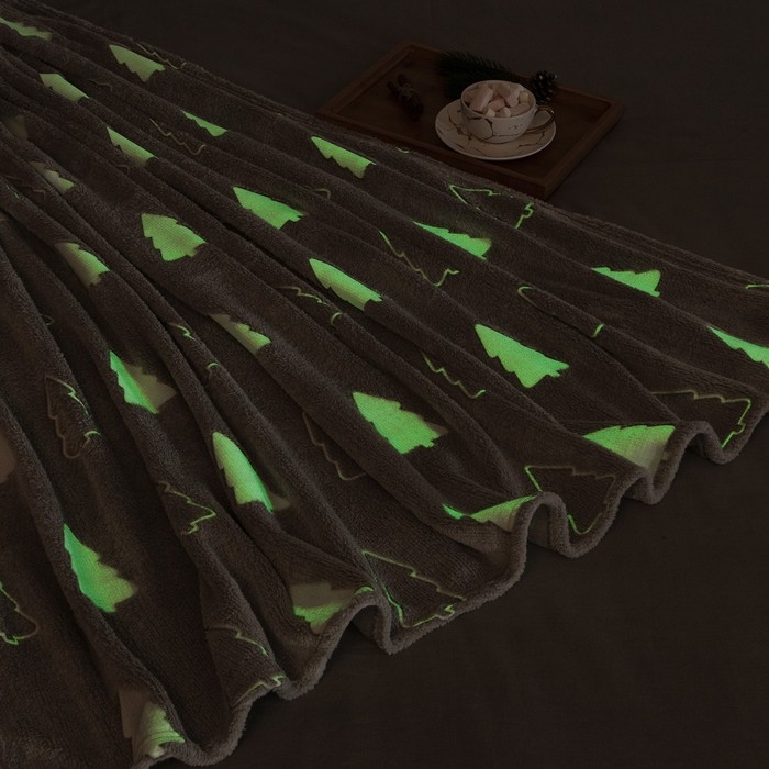Плед светящийся в темноте Этель "Елочки" 180*200 см,100% п/э, корал-флис 220 гр/м2
