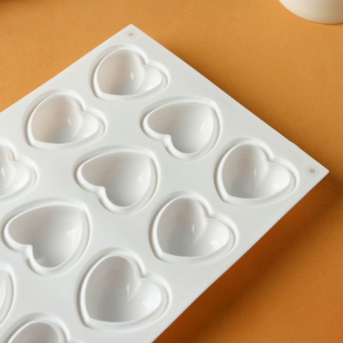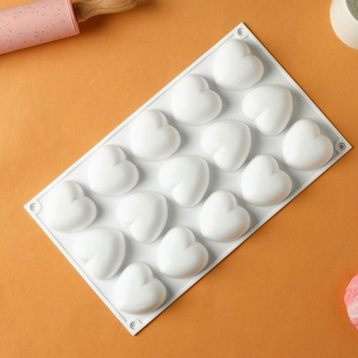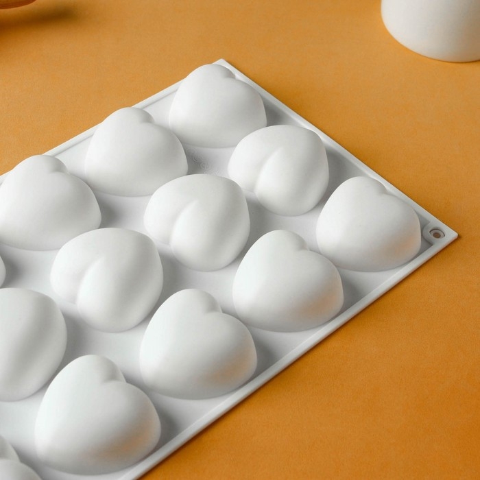 Форма для муссовых десертов и выпечки KONFINETTA «Сердца», 29,8×17,3×2,5 см, 15 ячеек (5×4,6 см), цвет белый
