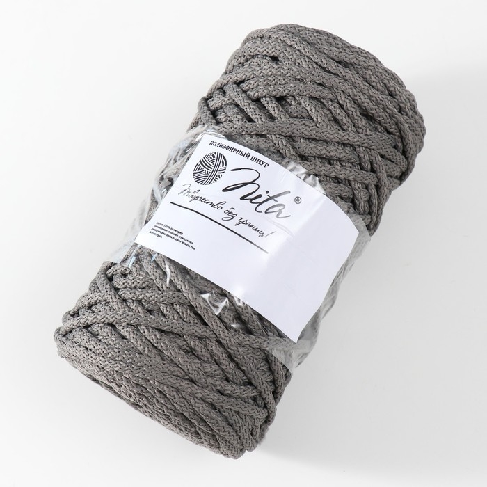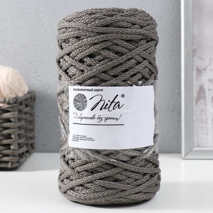 Шнур для вязания 100% полиэфир, ширина 5 мм 100м (серый)