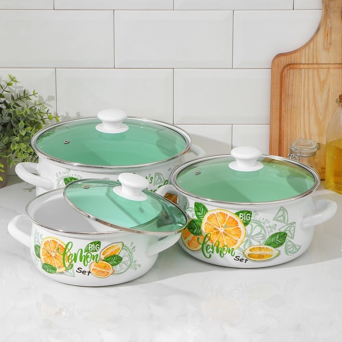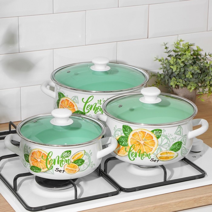 Набор кастрюль «Лимонный сет», 3 предмета: 2 л, 3 л ,4 л, индукция