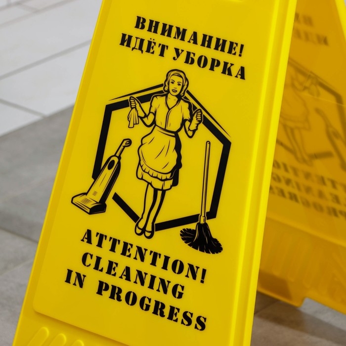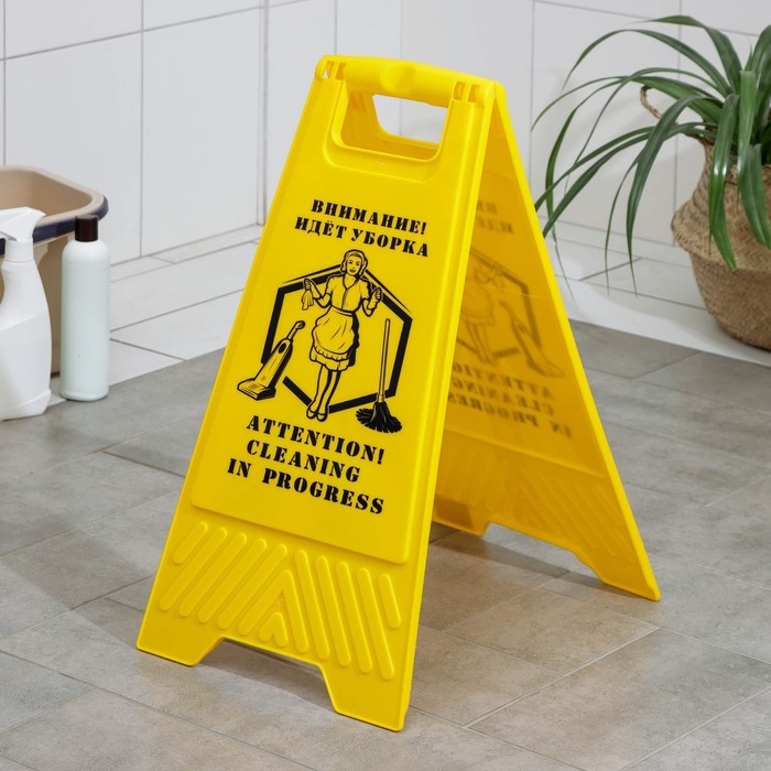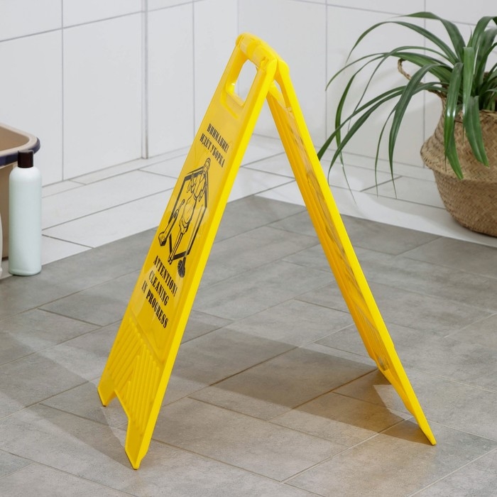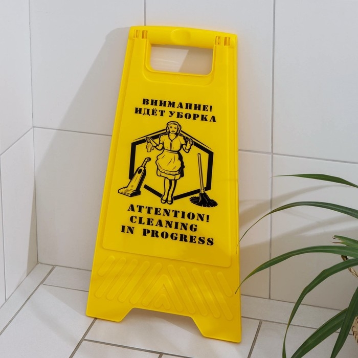 Знак «Внимание! Идёт уборка», 61×30 см, пластик, цвет жёлтый