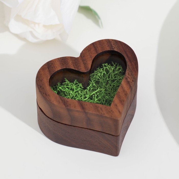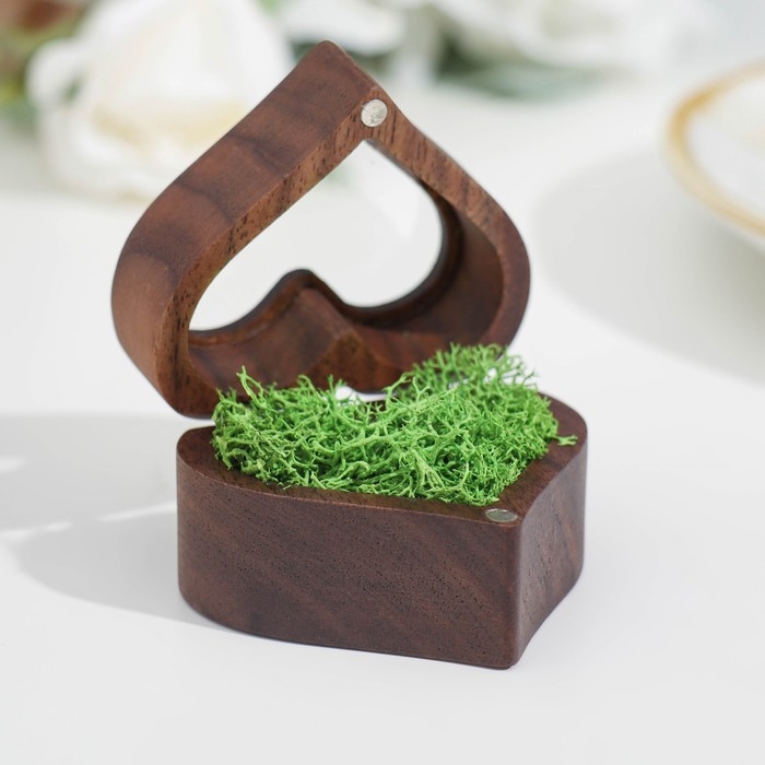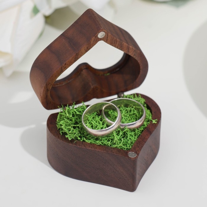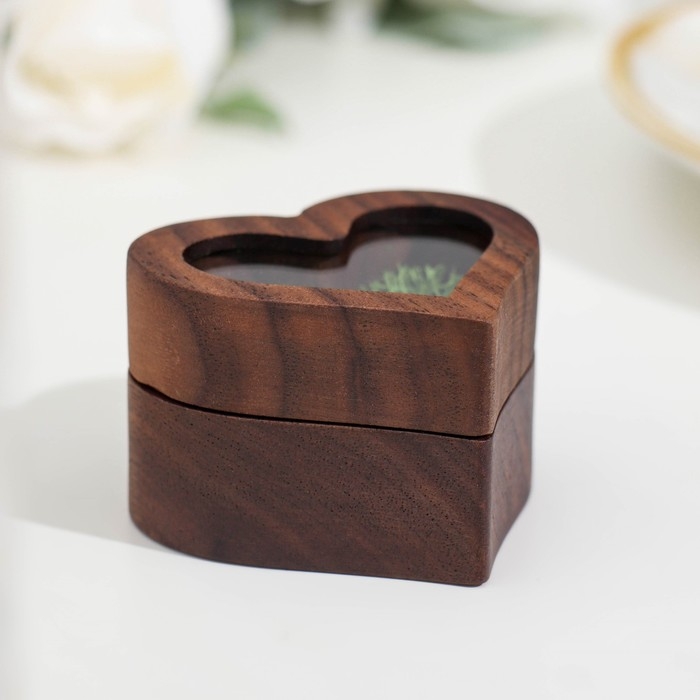 Шкатулка для колец "Сердце", зеленая подушка, темное дерево