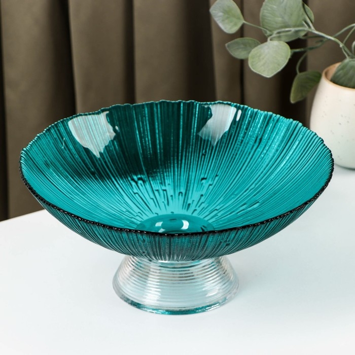 Ваза из стекла для фруктов «Фейерверк», 1,4 л, 25×10 см, цвет изумрудный