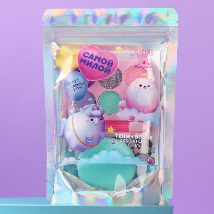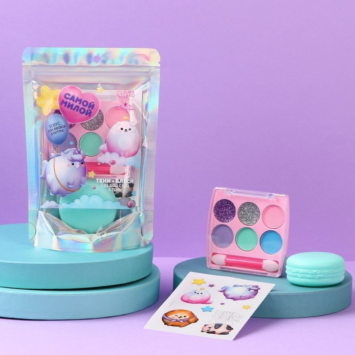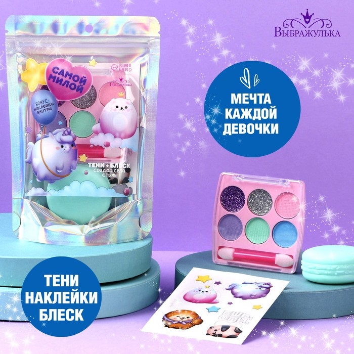 Набор детской косметики с наклейками «Волшебной девочке», тени, блеск для губ