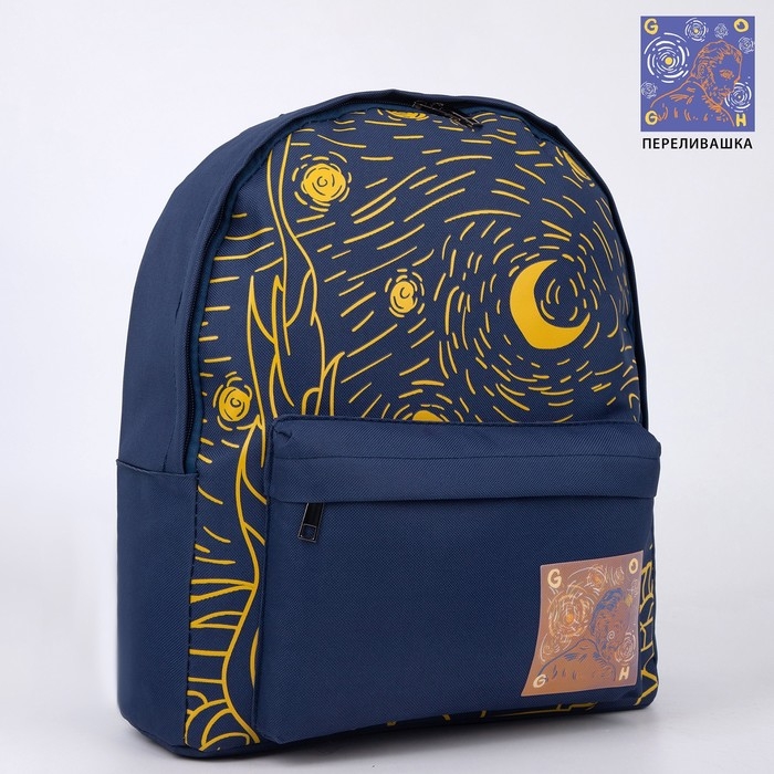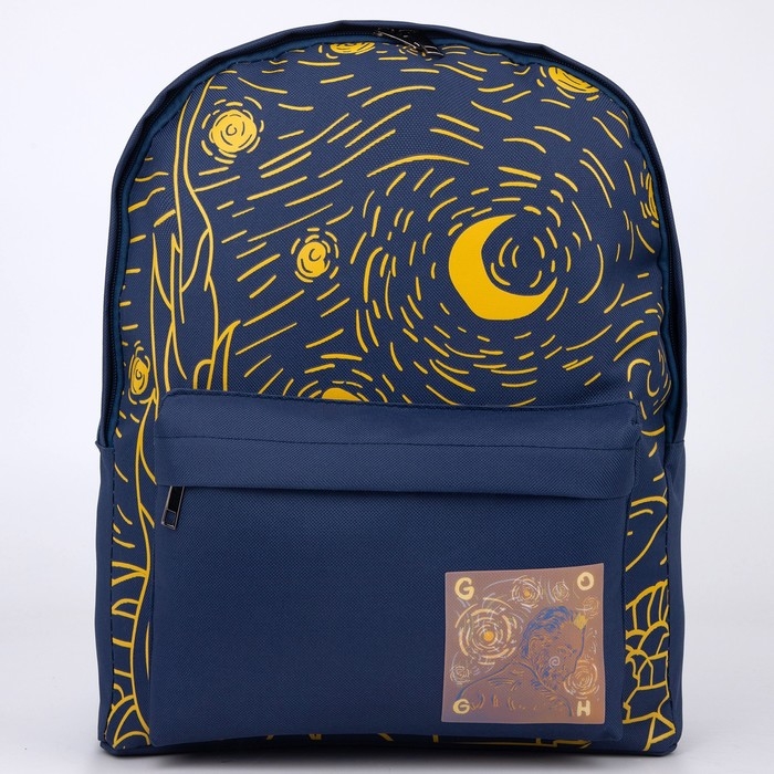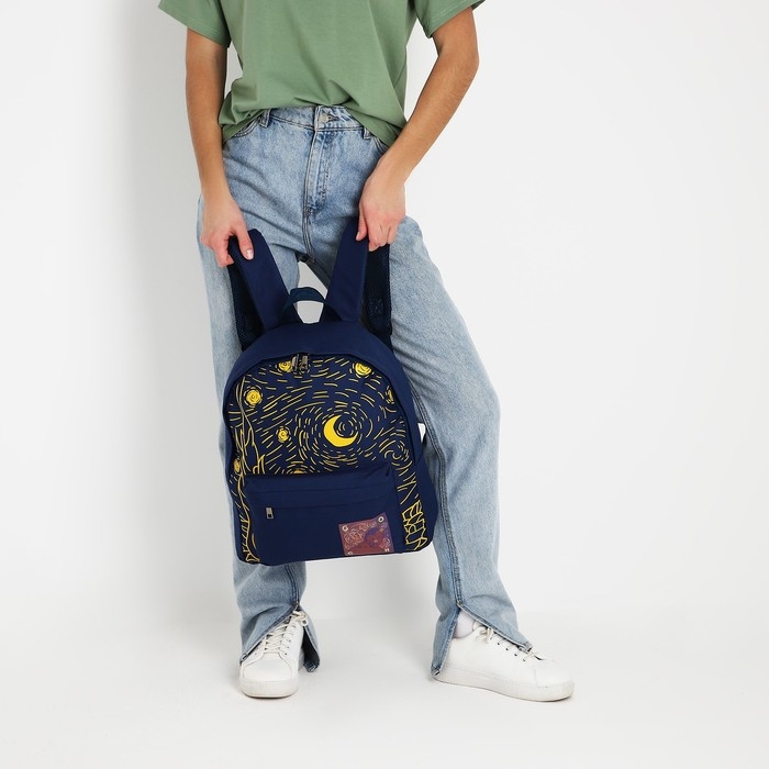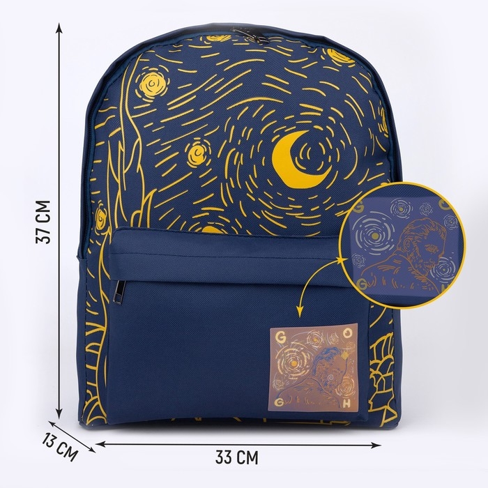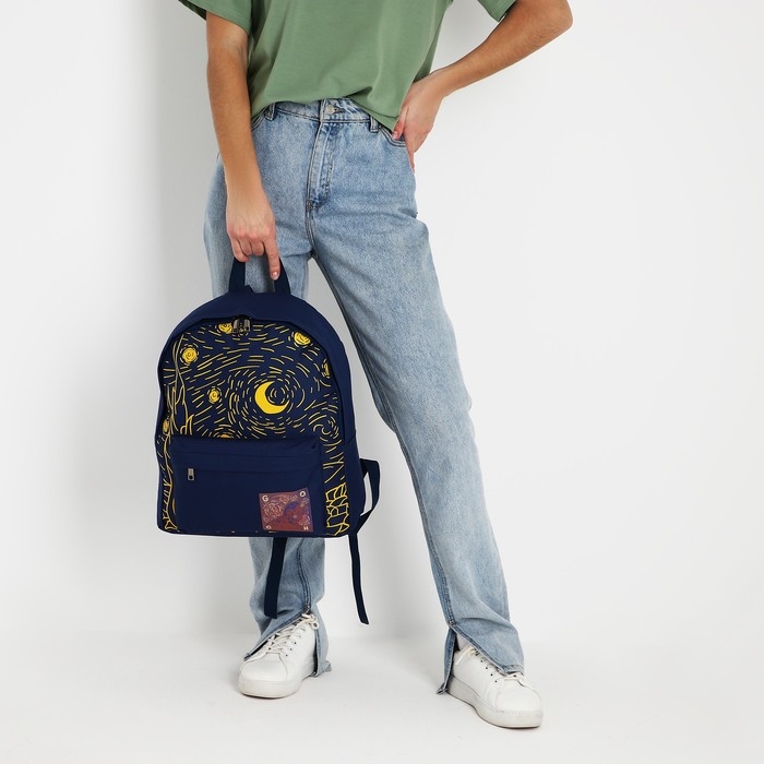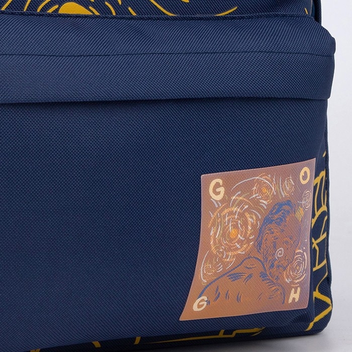 Рюкзак школьный текстильный ART, с переливающейся нашивкой, цвет темно-синий