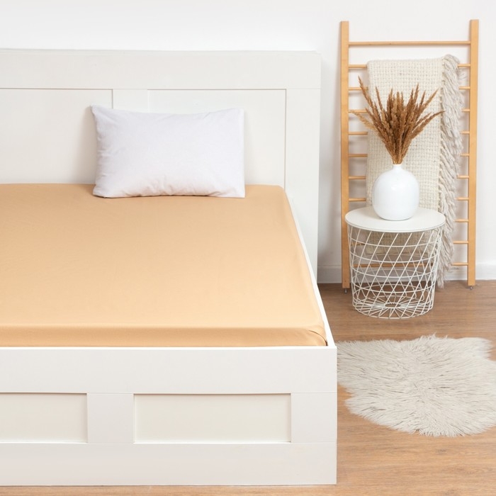 Простыня на резинке Этель 160х200х25, цвет бежевый, 100% хлопок, бязь 125г/м2