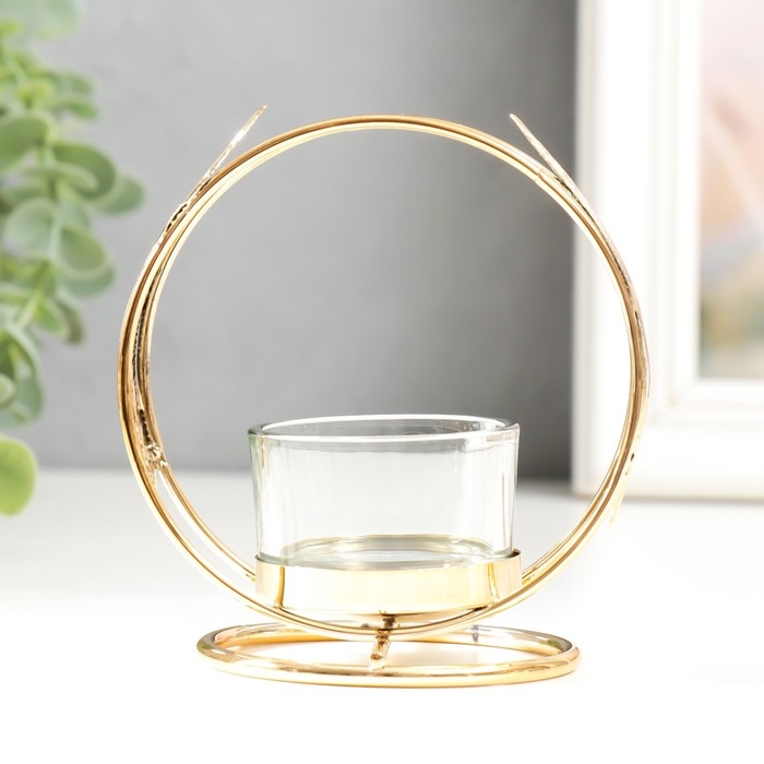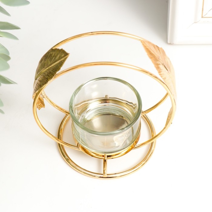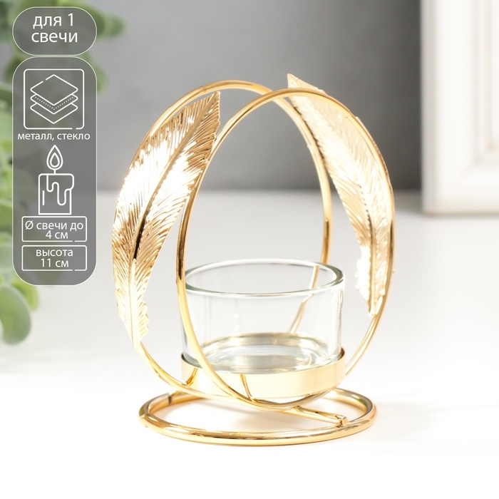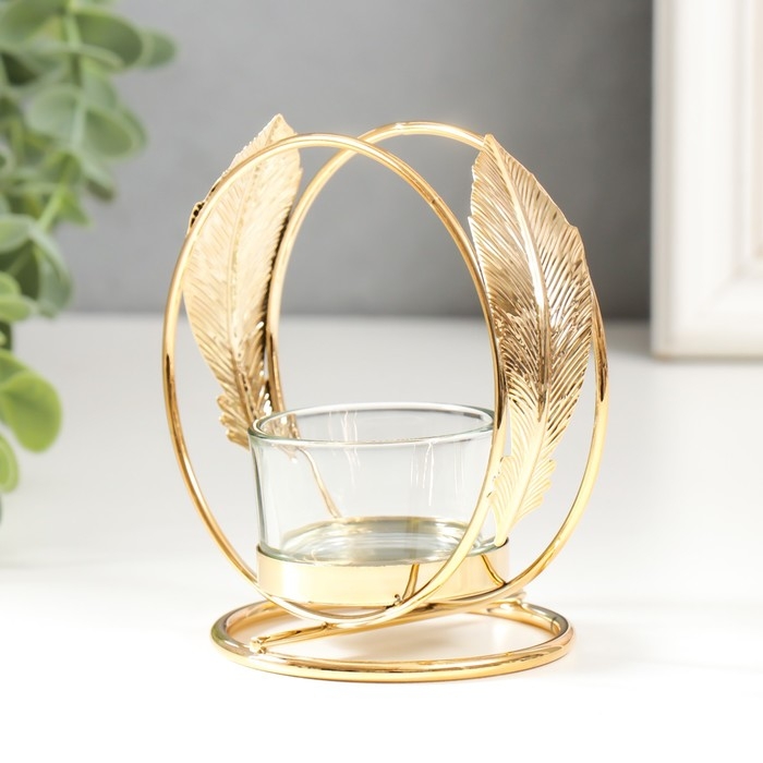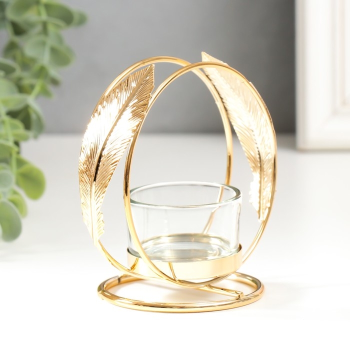 Подсвечник металл, стекло на 1 свечу "Пёрышки" d-4 см золото 7,5х10х11 см