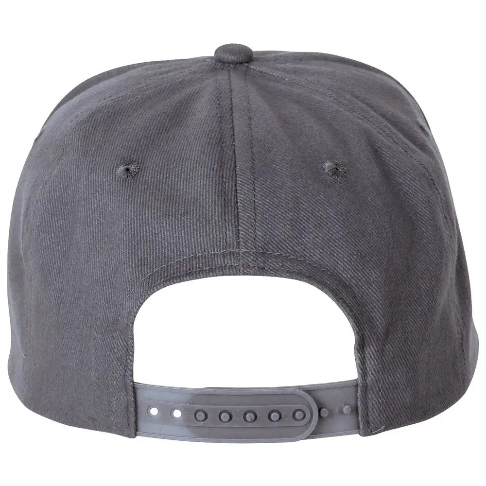 Плоский козырек, 4 вышитых отверстия для вентиляции, регулируемая пластмассовая застежка сзади.
