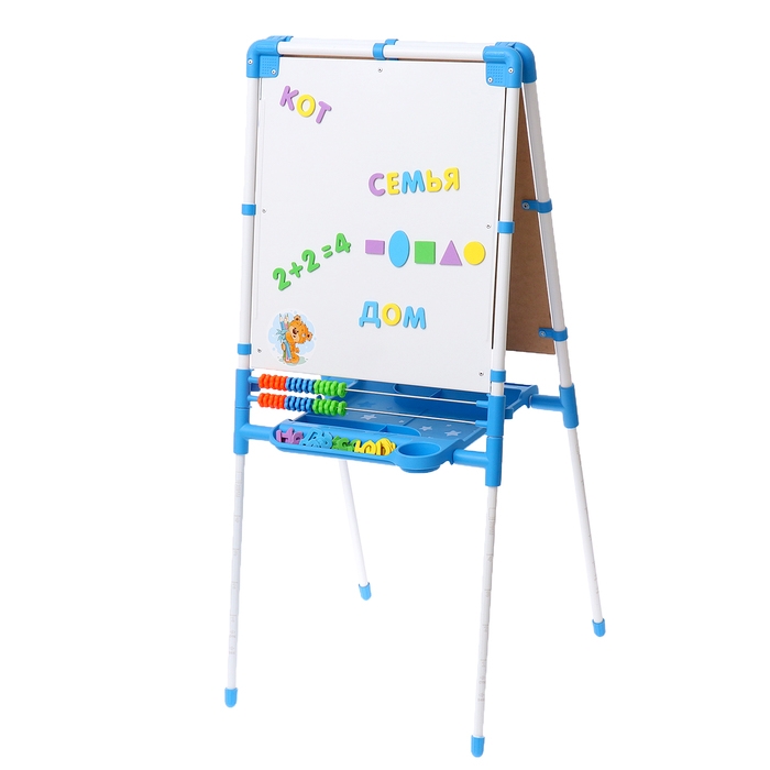 Мольберт детский двусторонний «Доска знаний», регулируется по высоте, + учебные принадлежности, цвет голубой