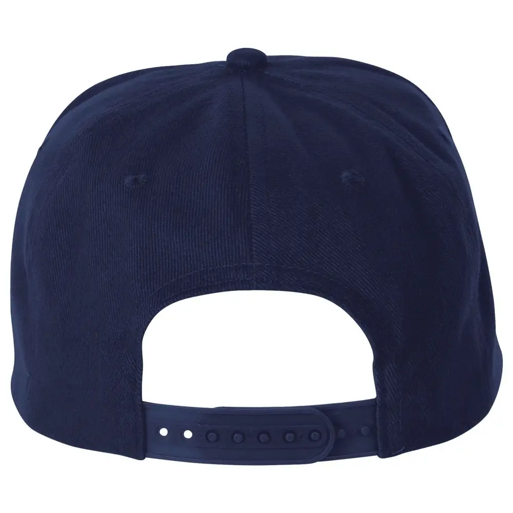 Однотонная бейсболка с 5 клиньями из материала, на ощупь напоминающего шерсть. Плоский козырек, 4 вышитых отверстия для вентиляции, регулируемая пластмассовая застежка сзади.