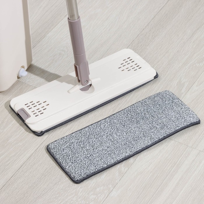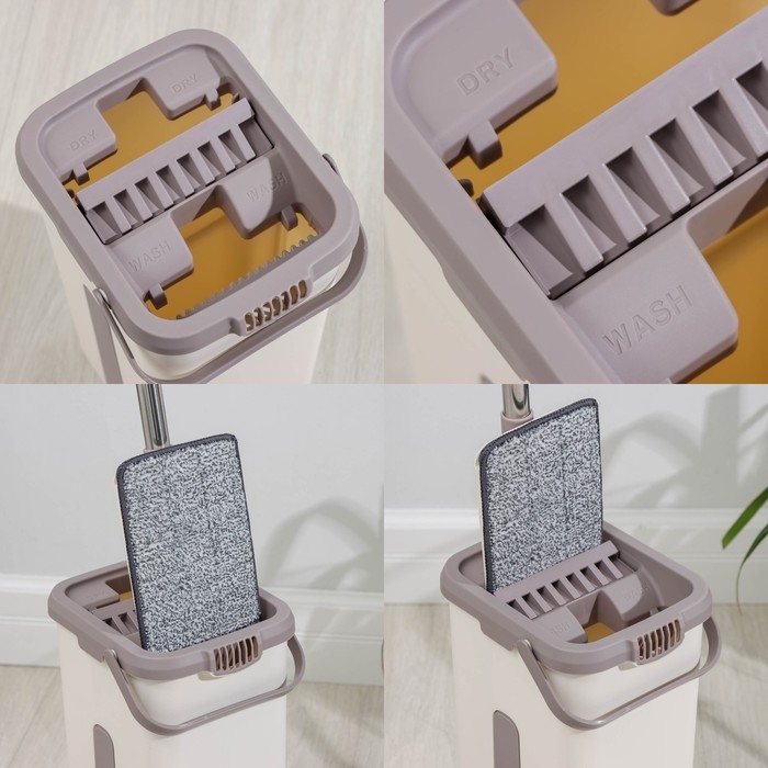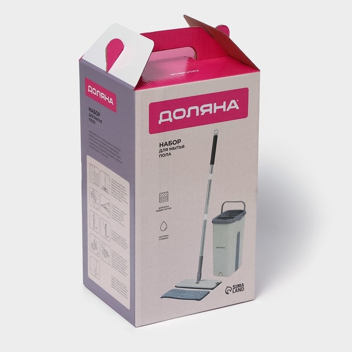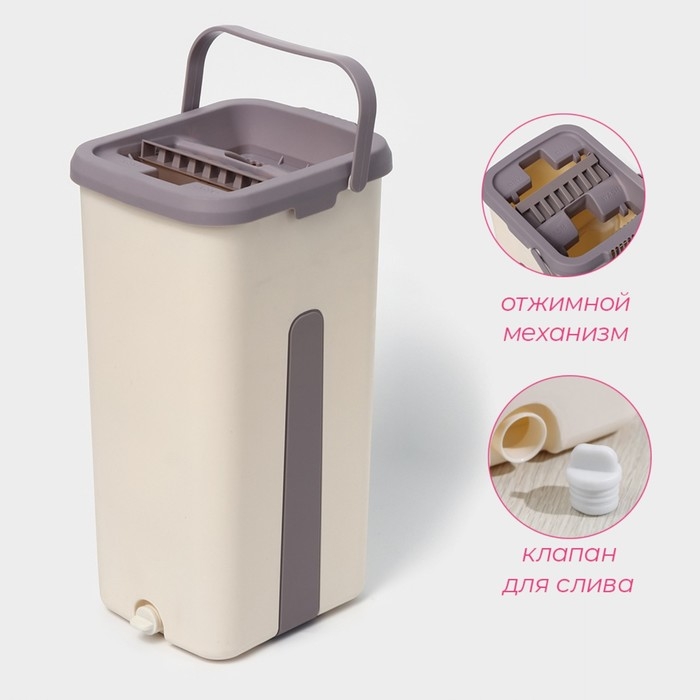 Швабра с отжимом и ведро Доляна: ведро с 2 отсеками 21×18×37, швабра 32×12×128 см, отсек= 4 л, дополнительная насадка из микрофибры