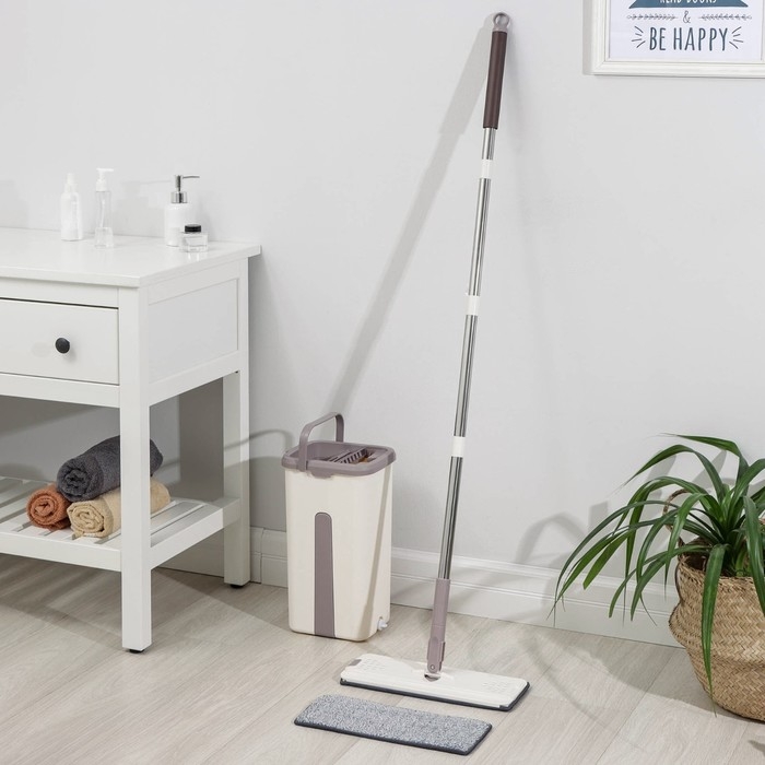 Швабра с отжимом и ведро Raccoon: швабра 32×5×132 см, ведро для полоскания и отжима 14 л