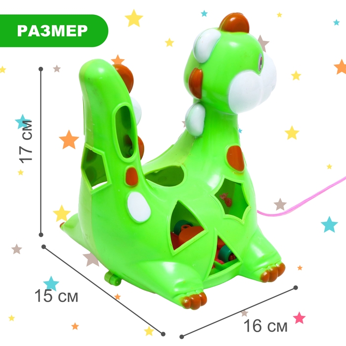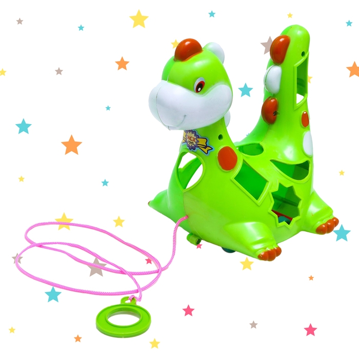 Каталка-сортер на верёвке «Динозаврик», цвета МИКС