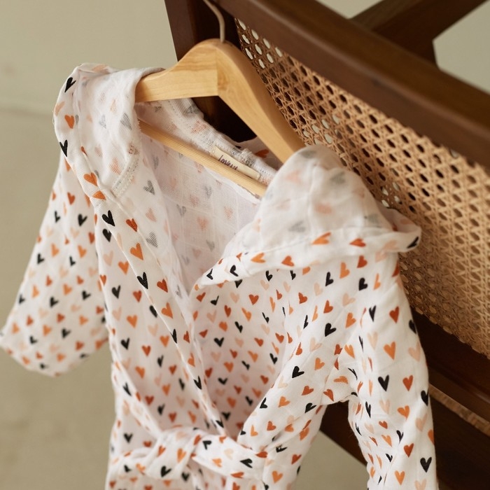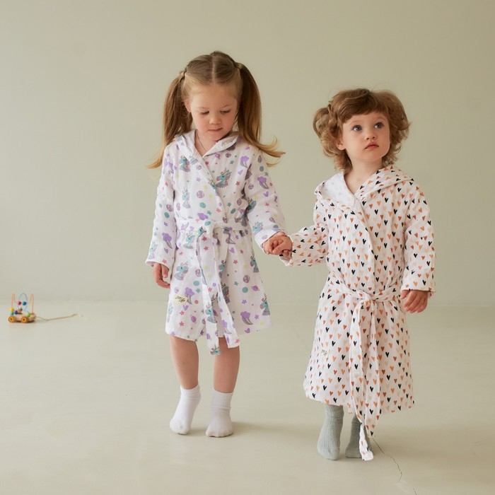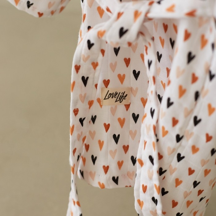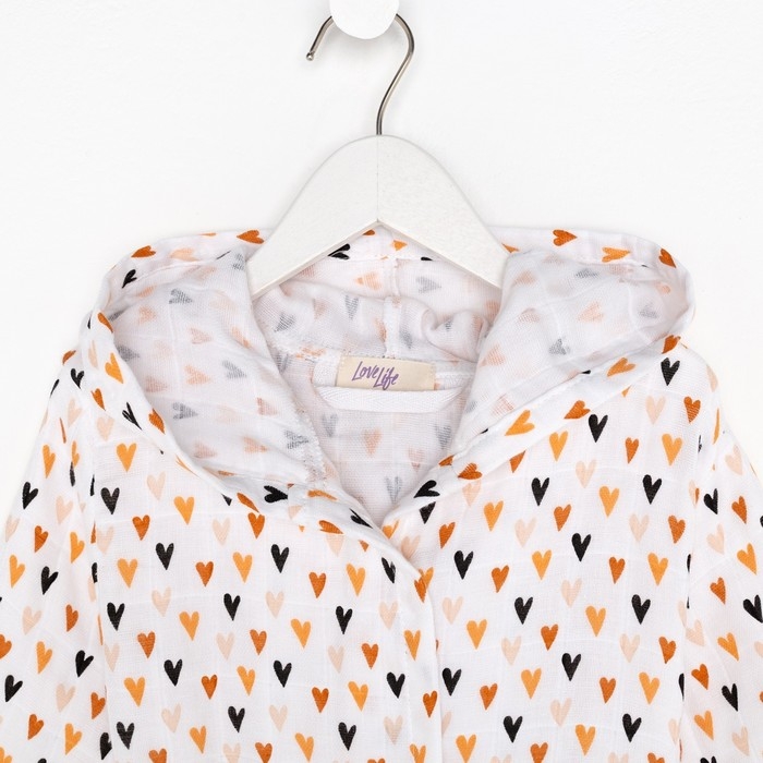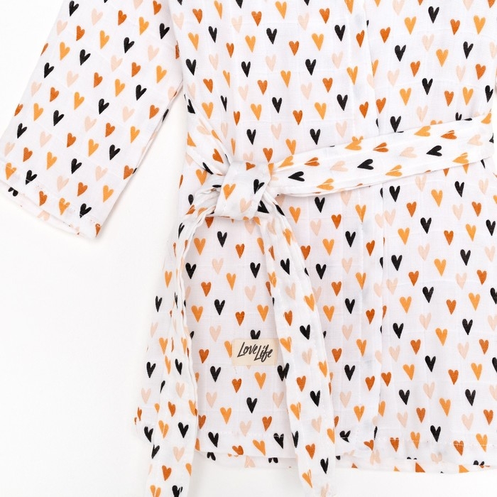Халат детский муслиновый LoveLife «Сердечки» (3 года, рост 98-104 см) 100% хлопок, 235 гр/м2