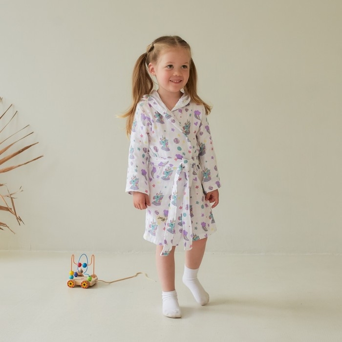 Халат детский муслиновый LoveLife «Единороги» (2 года, рост 92-98 см) 100% хлопок, 235 гр/м2