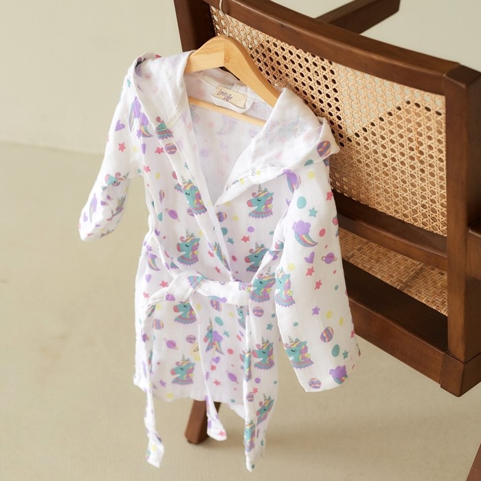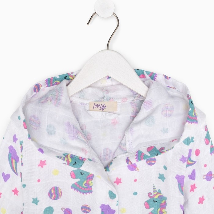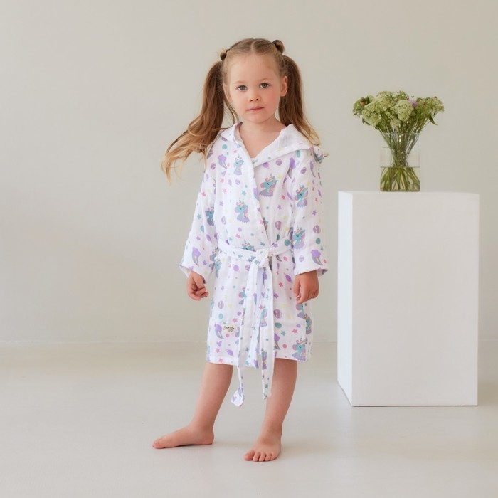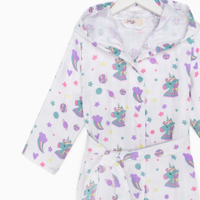 Халат детский муслиновый LoveLife "Единороги" (4 года, рост 104-110 см) 100% хлопок, 235 гр/м2