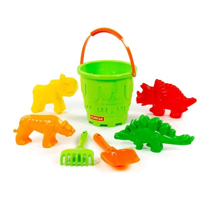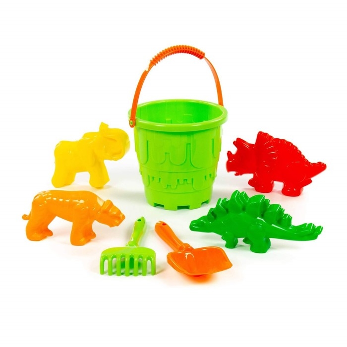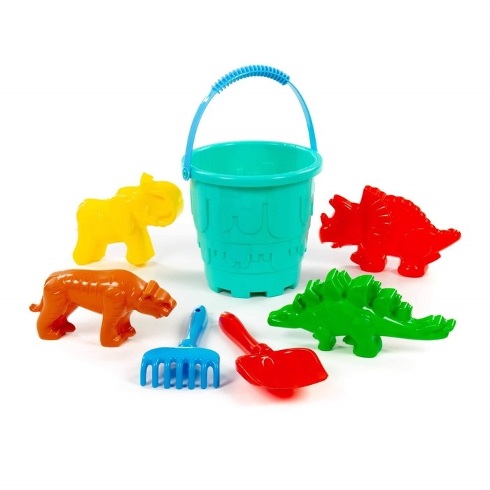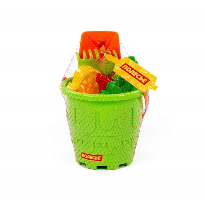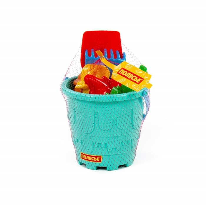 Набор для игры в песке №527: ведро-замок большое, лопатка №5, грабельки №5, формочки