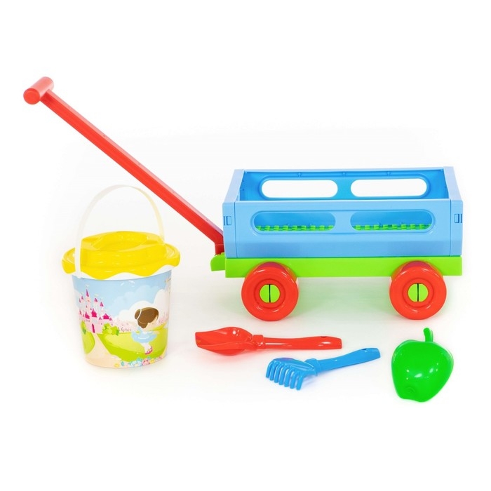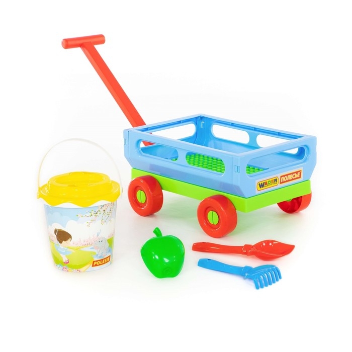 Набор для игры в песке №420: тележка, ведро, ситечко, лопатка, грабельки, формочка