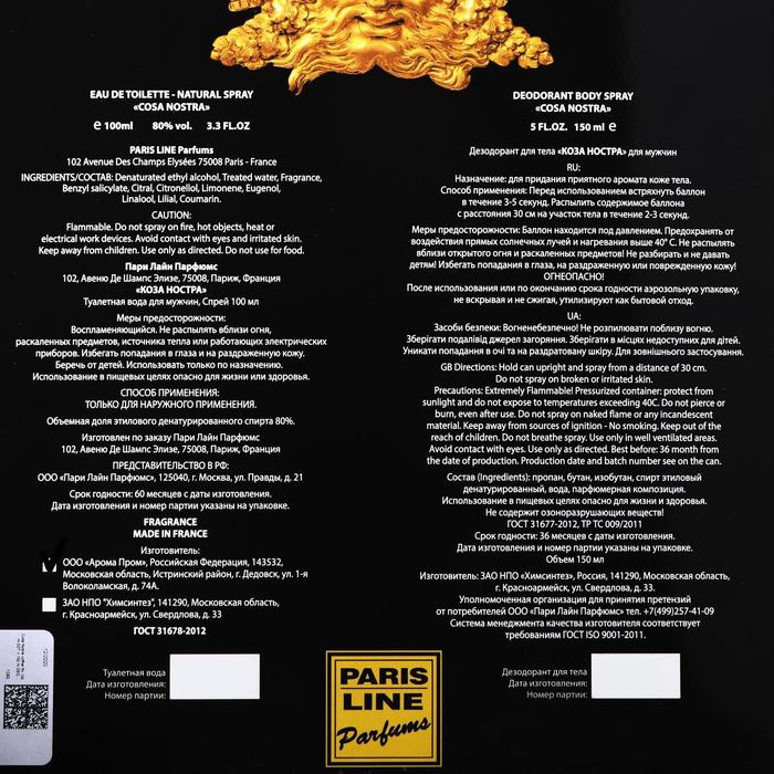 Подарочный набор для мужчин: Туалетная вода Cosa Nostra+дезодорант