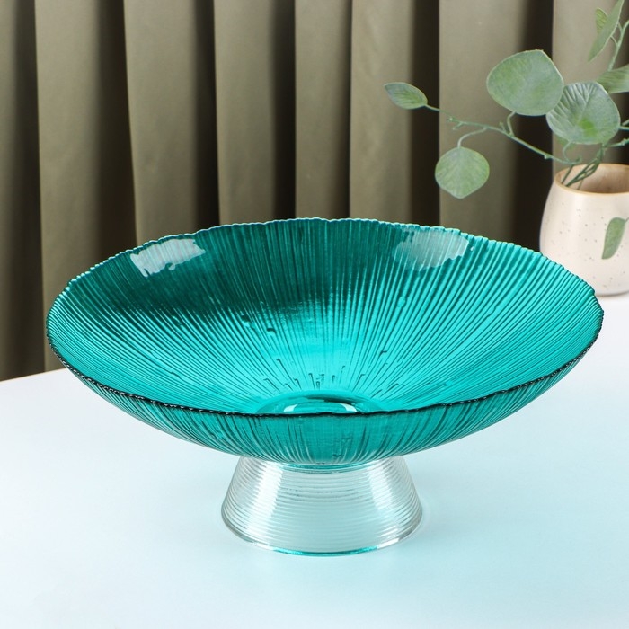 Ваза из стекла для фруктов «Фейерверк», 3,7 л, 33×13,5 см, цвет изумрудный