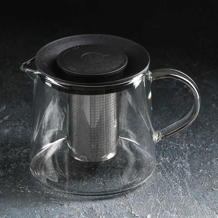 Чайник стеклянный заварочный Magistro «Локи», 1 л, 17,5×13×12,5 см, с металлическим ситом, цвет чёрный