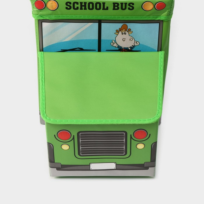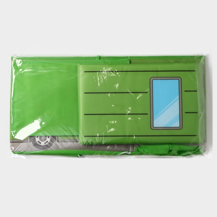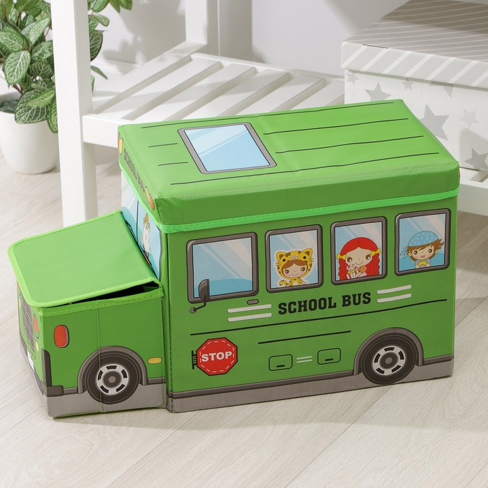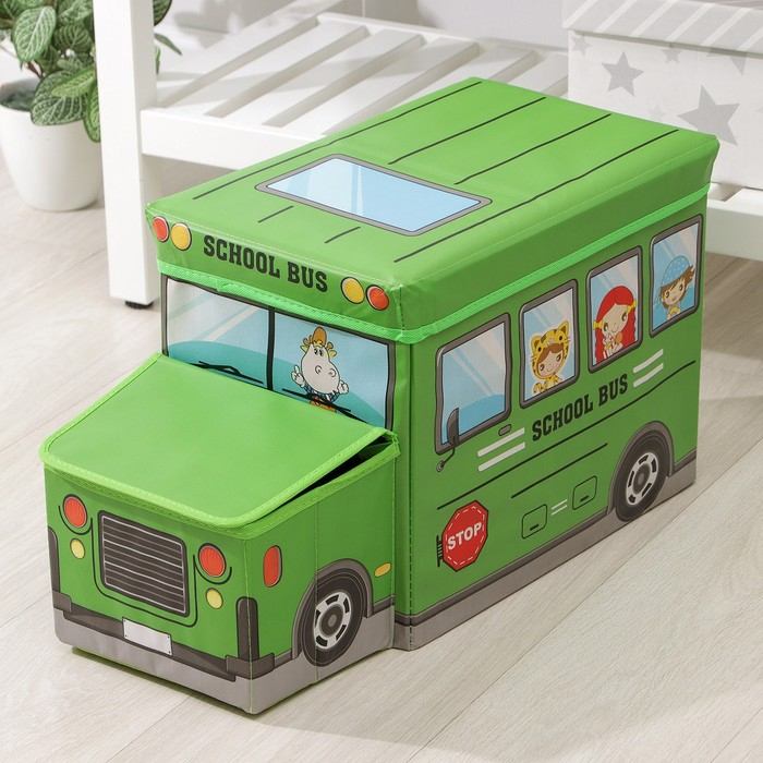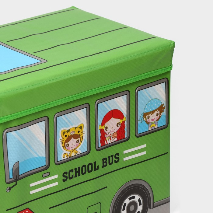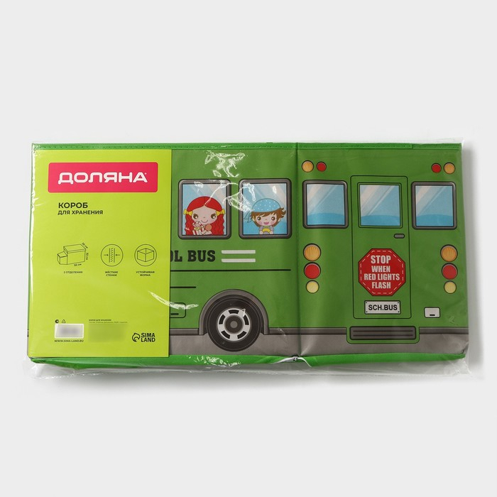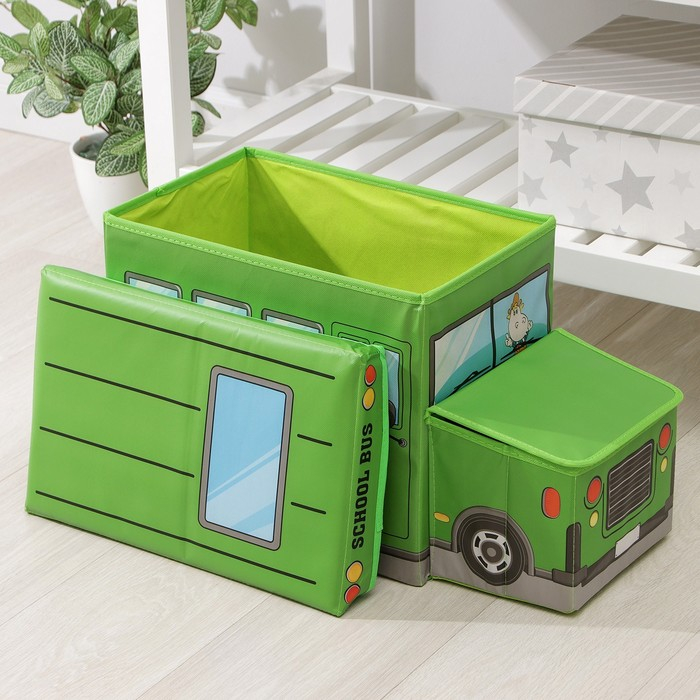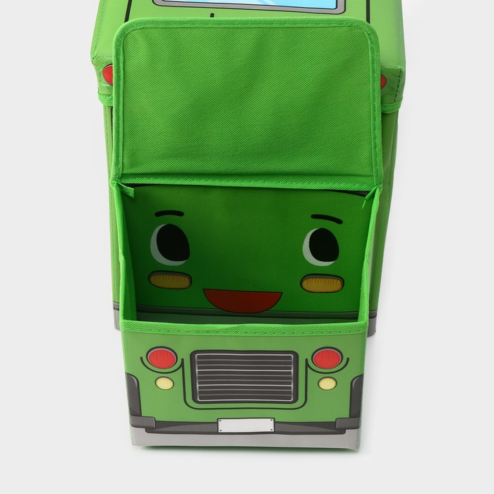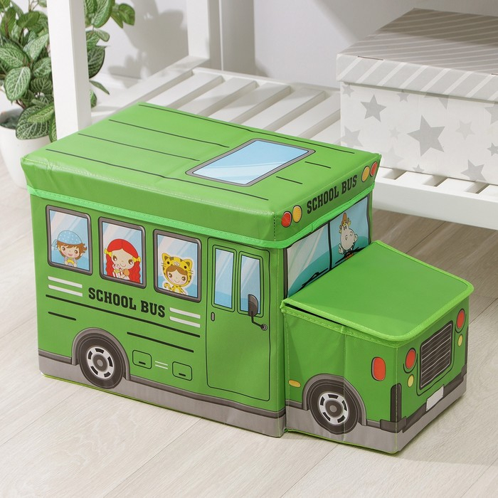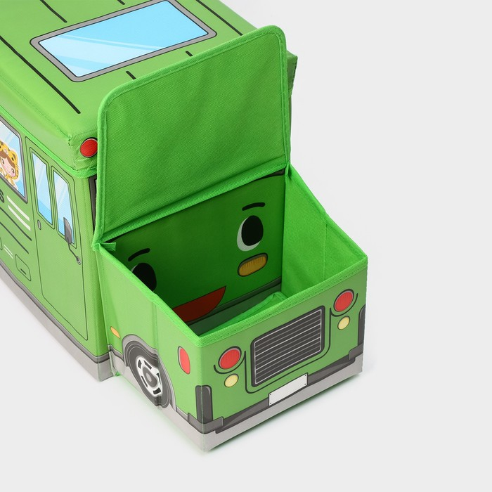 Короб стеллажный для хранения с крышкой Доляна «Школьный автобус», 55×26×32 см, 2 отделения, цвет зелёный
