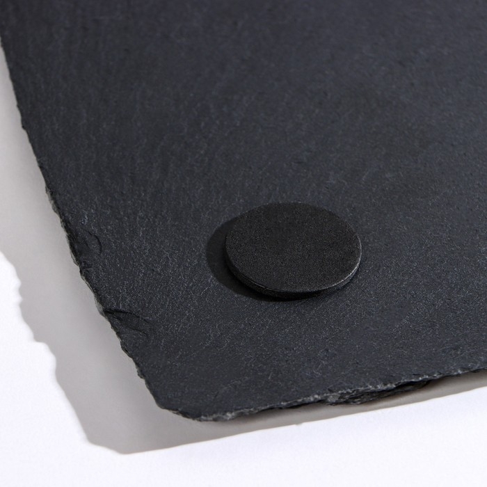 Изготовленная из натурального камня, доска обладает прочностью и долговечностью, что позволяет использовать её долгие годы. Чёрный цвет и отсутствие рисунка делают её универсальной и стильной, подходящей для любого интерьера.