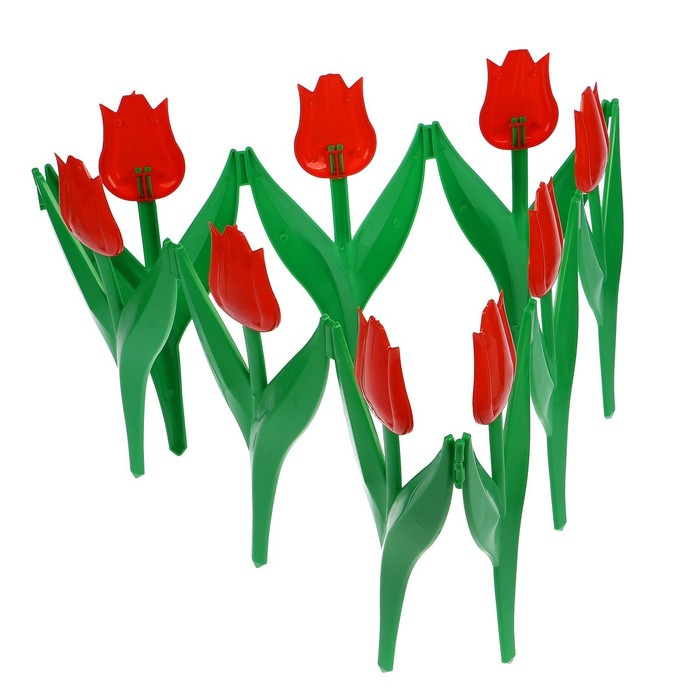 Ограждение декоративное, 30 × 225 см, 5 секций, пластик, красный цветок, «Тюльпан»