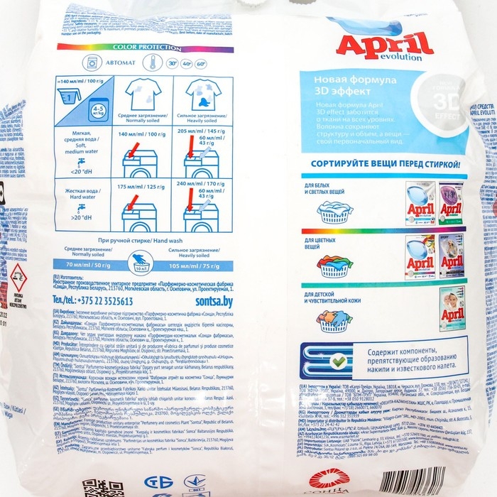 Стиральный порошок April Evolution, Color, Protection, автомат, для стирки цветного, 3 кг