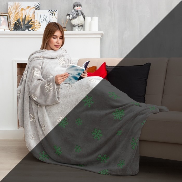 Плед с рукавами светящийся в темноте Этель "Снежинки" 150*200, 100% п/э, 220 гр/м2