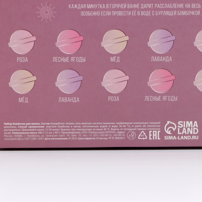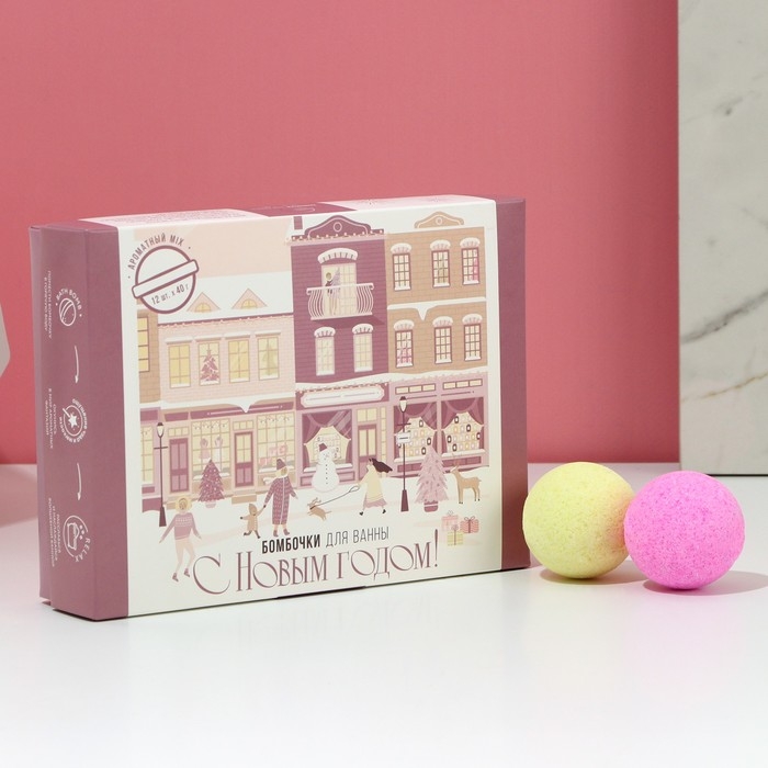 Новогодний подарочный набор косметики «С Новым годом!», бомбочки для ванны, 12 х 40 г, ЧИСТОЕ СЧАСТЬЕ