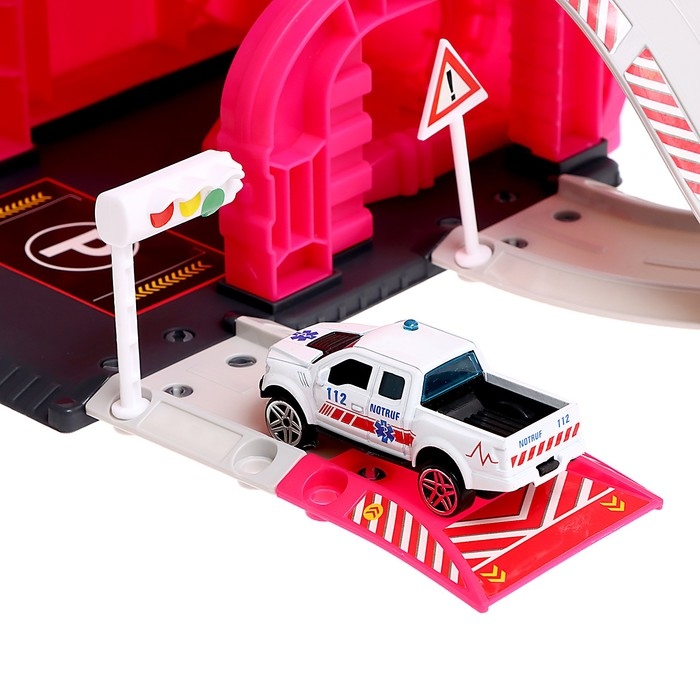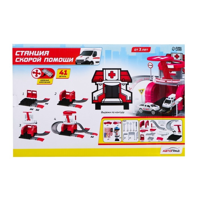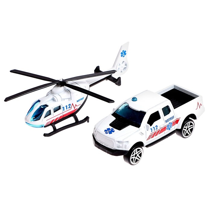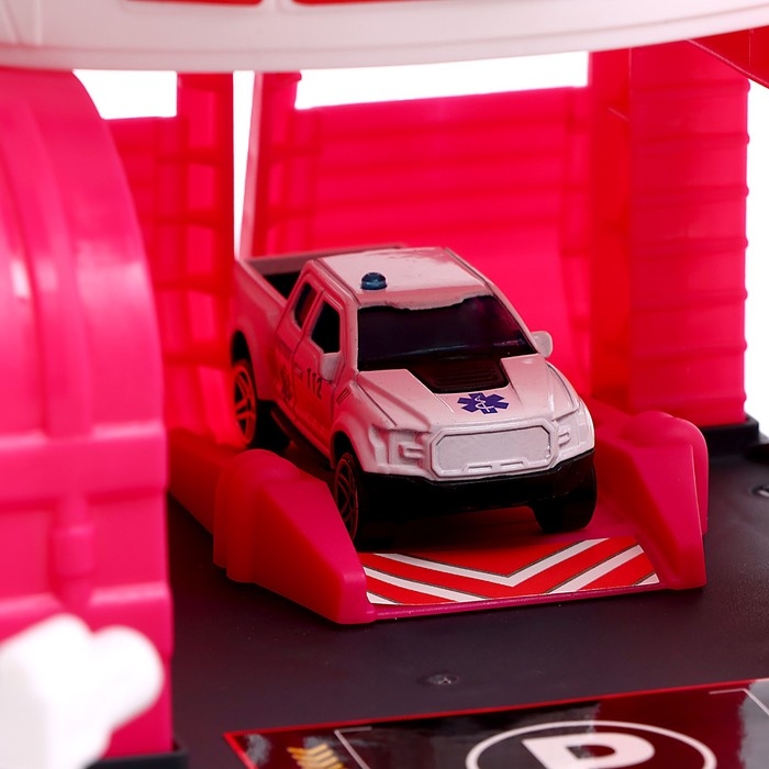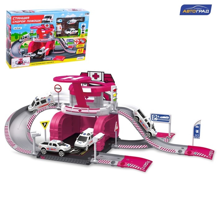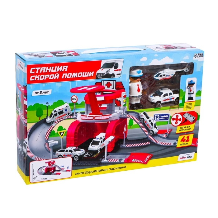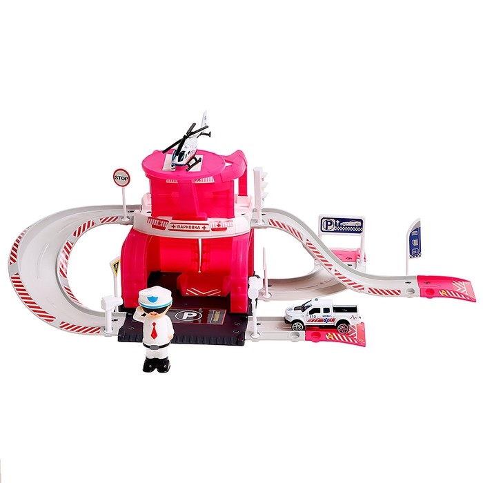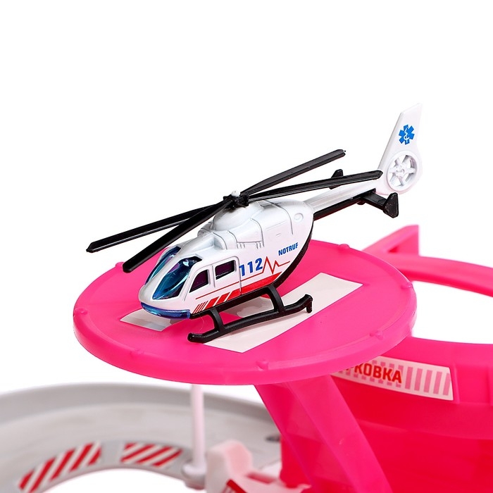 Парковка «Станция скорой помощи», с металлическими машинкой и вертолётом