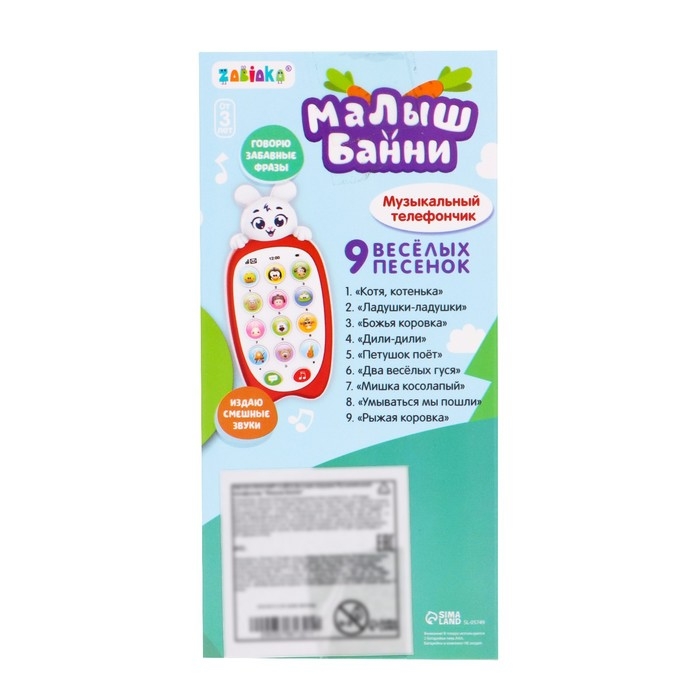Музыкальный телефончик «Малыш Банни» поспособствует развитию памяти, внимания, мышления, мелкой моторики рук.