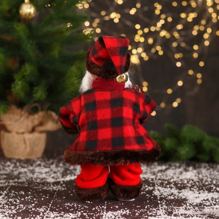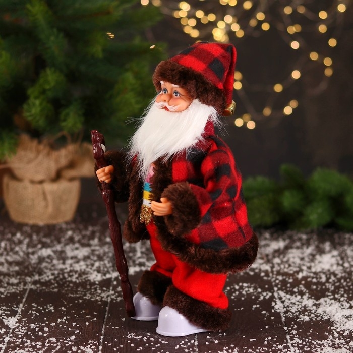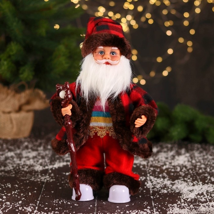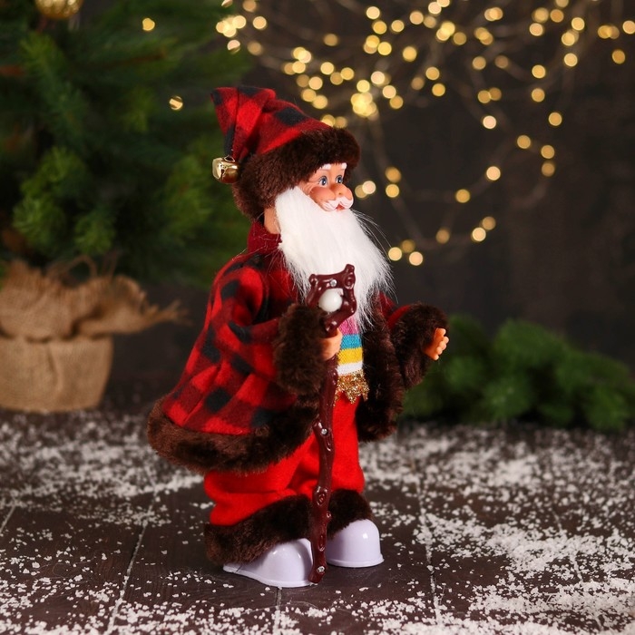 Дед Мороз "В полосатом свитере и с посохом" 27 см, двигается, красно-коричневый