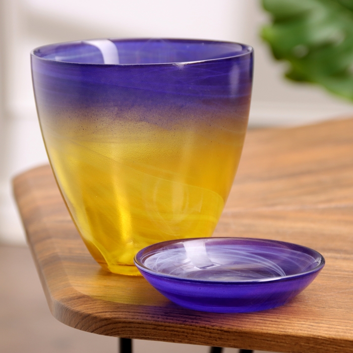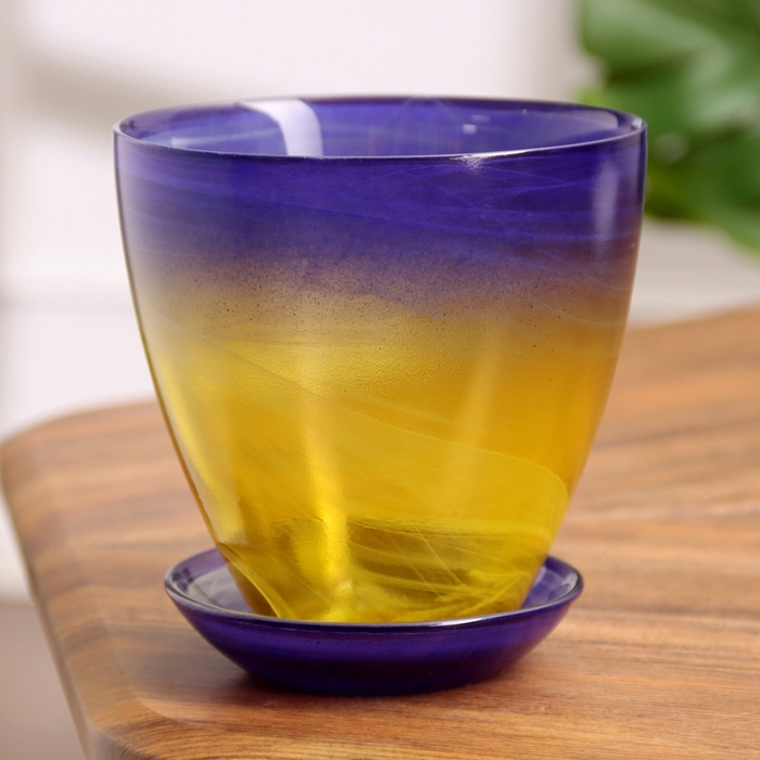 Горшок цветочный с поддоном №2 "Алеб" желто-фиолетовый, 0,85 л