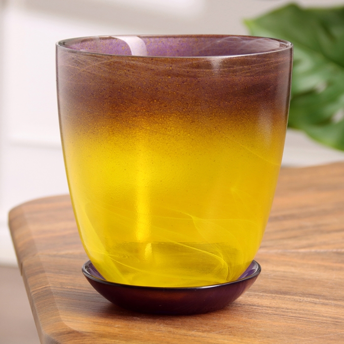 Горшок цветочный с поддоном №3 "Алеб" желто-фиолетовый, 1 л