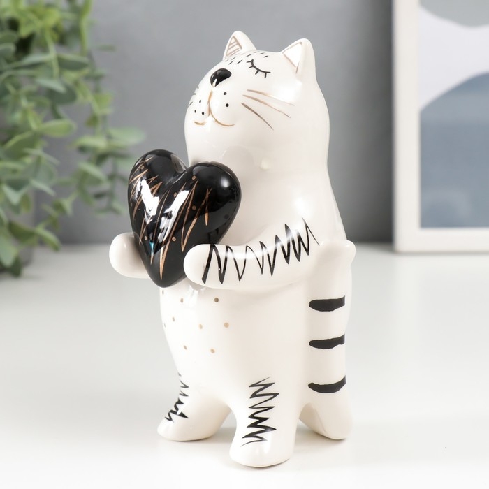 Сувенир керамика "Котик с сердечком" бело-чёрный с золотом 15х8,2х7,8 см 6436041
