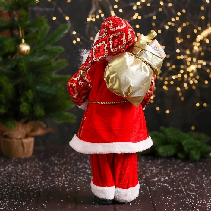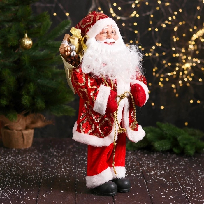 Дед Мороз " В узорчатой шубе, с подвязкой" 47 см, красный